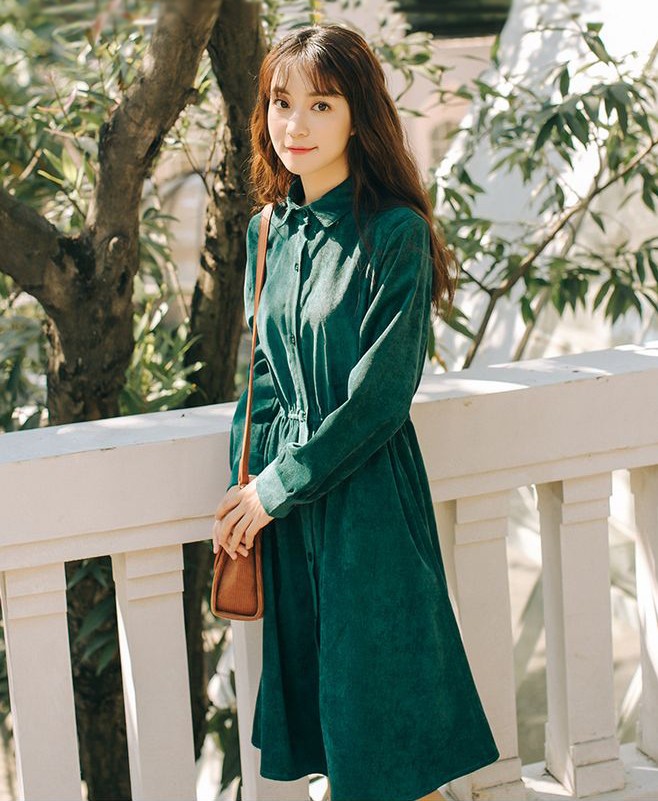 墨綠色燈芯絨襯衫裙