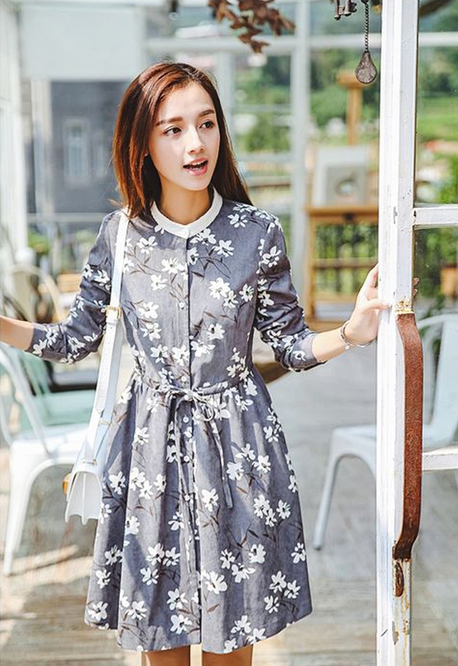 印花燈芯絨面料做成的燈芯絨襯衫裙