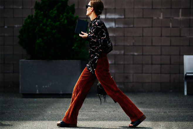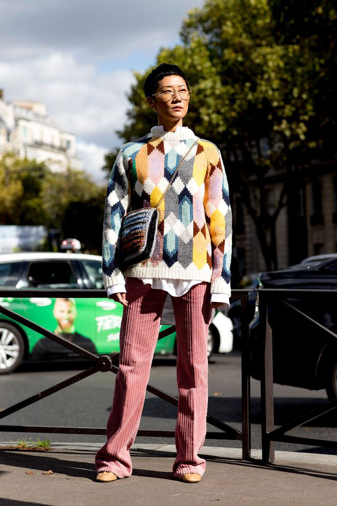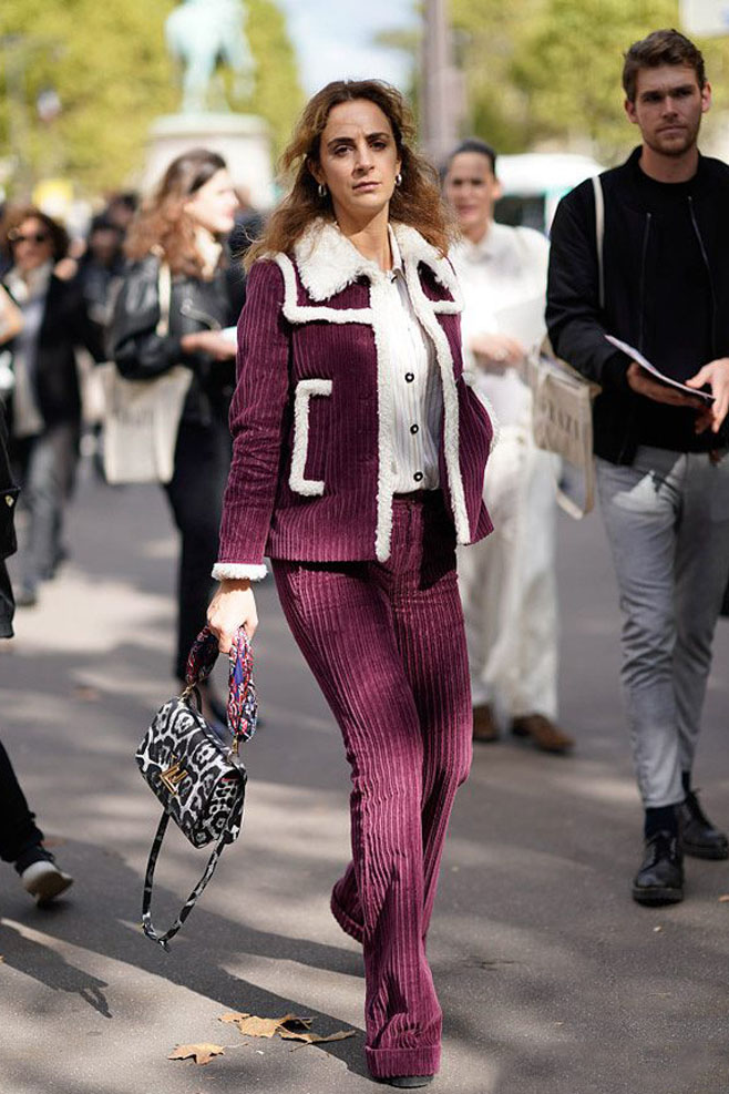 時尚街拍:粗條燈芯絨服裝