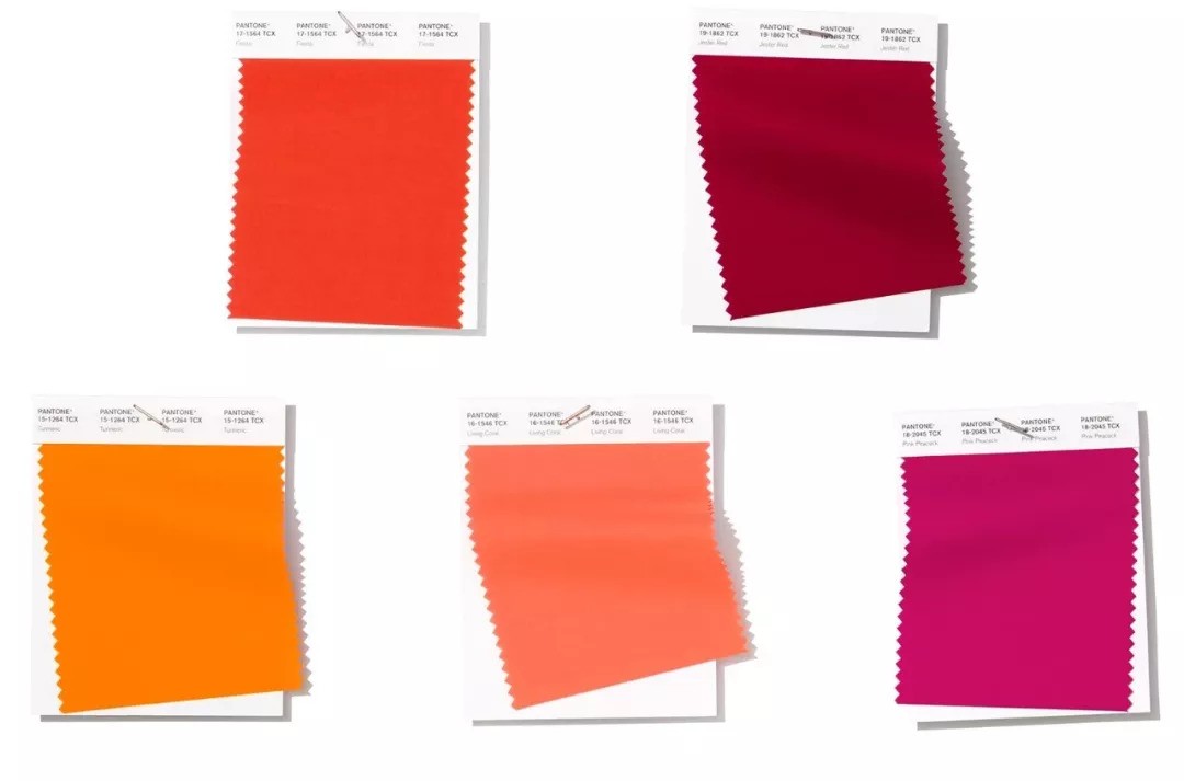 報(bào)告展示:2019年春夏將以紅色和橘紅色為主色調(diào),最流行的五種色彩分別為Fiesta、Jester Red、Turmeric、Living Coral和Pink Peacock。