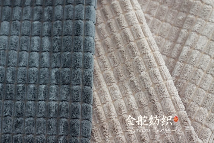 滌錦玉米粒燈芯絨面料因表面絨毛顆粒類似玉米顆粒形狀,而被稱為玉米粒燈芯絨,也有人叫玉米絨!玉米粒燈芯絨,采用優(yōu)質(zhì)滌錦復(fù)合絲,經(jīng)噴水織機(jī)織造而成,再經(jīng)染廠開纖,預(yù)縮,染色,定型,梳毛,打卷而成!玉米粒燈芯絨面料,絨毛顆粒飽滿,蓬松,厚實(shí)耐磨,手感柔軟但不像毛絨類面料軟趴,而是有一定的挺度,與人體接觸就像摸麻將席一樣的觸感而具有一定的按摩效果,因而在家紡,靠枕,沙發(fā)套,按摩椅,被套等有著廣泛的應(yīng)用!