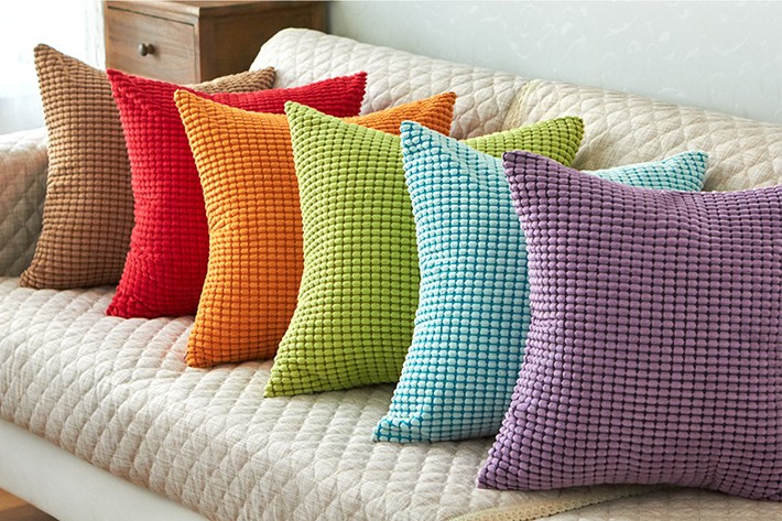 滌錦玉米粒燈芯絨面料在家紡中的應(yīng)用,2.5條玉米粒做成的方型靠枕