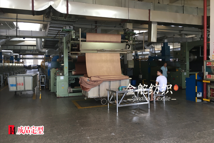 14.成品定型,可以加入柔軟劑,抗靜電劑,防水劑等助劑,控制手感,門(mén)幅,克重厚薄的重要工序。