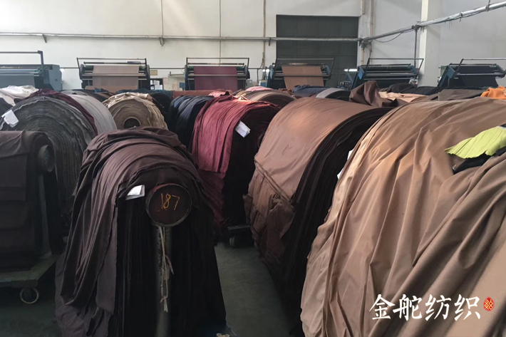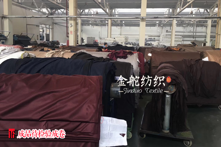16.成品待檢驗(yàn),成卷,A字架擺放麂皮絨,可以減少因堆放擠壓造成的皺褶