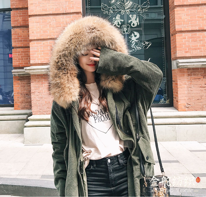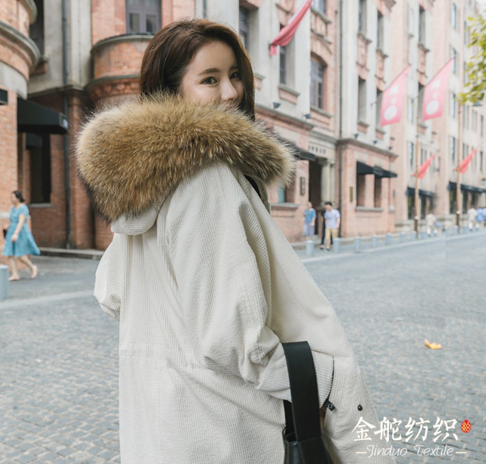 燈芯絨帶毛領(lǐng)大衣