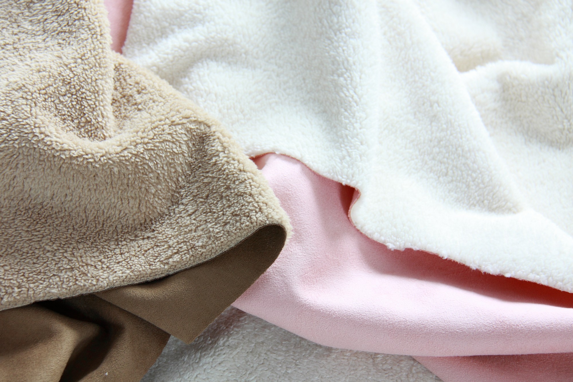 3.梳棉絨,羊羔絨,毛絨類背面通常有毛球,油膠復(fù)合后面料表面會形成顆粒突起!