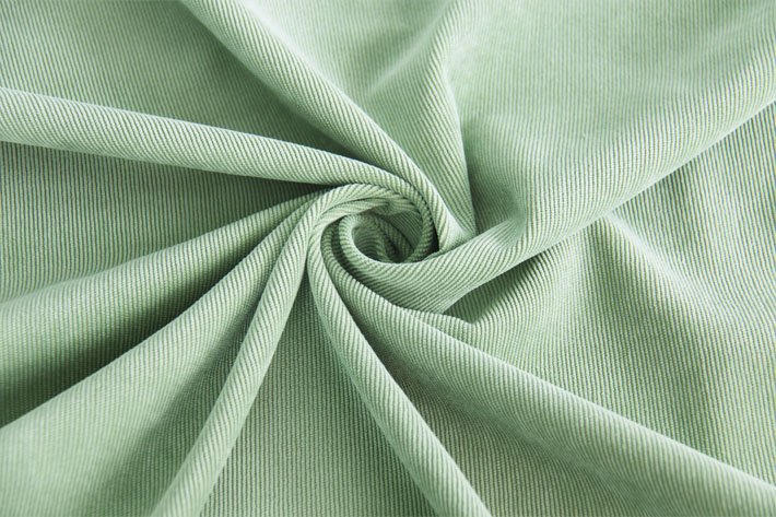 環(huán)保染色,色澤柔和,霜花均勻。霜花效果是錦滌成分燈芯絨固有的特征,我們生產(chǎn)的細(xì)條燈芯絨經(jīng)過多道水磨工藝,可以把表面霜花(發(fā)白的地方)處理均勻,提高布料的檔次。