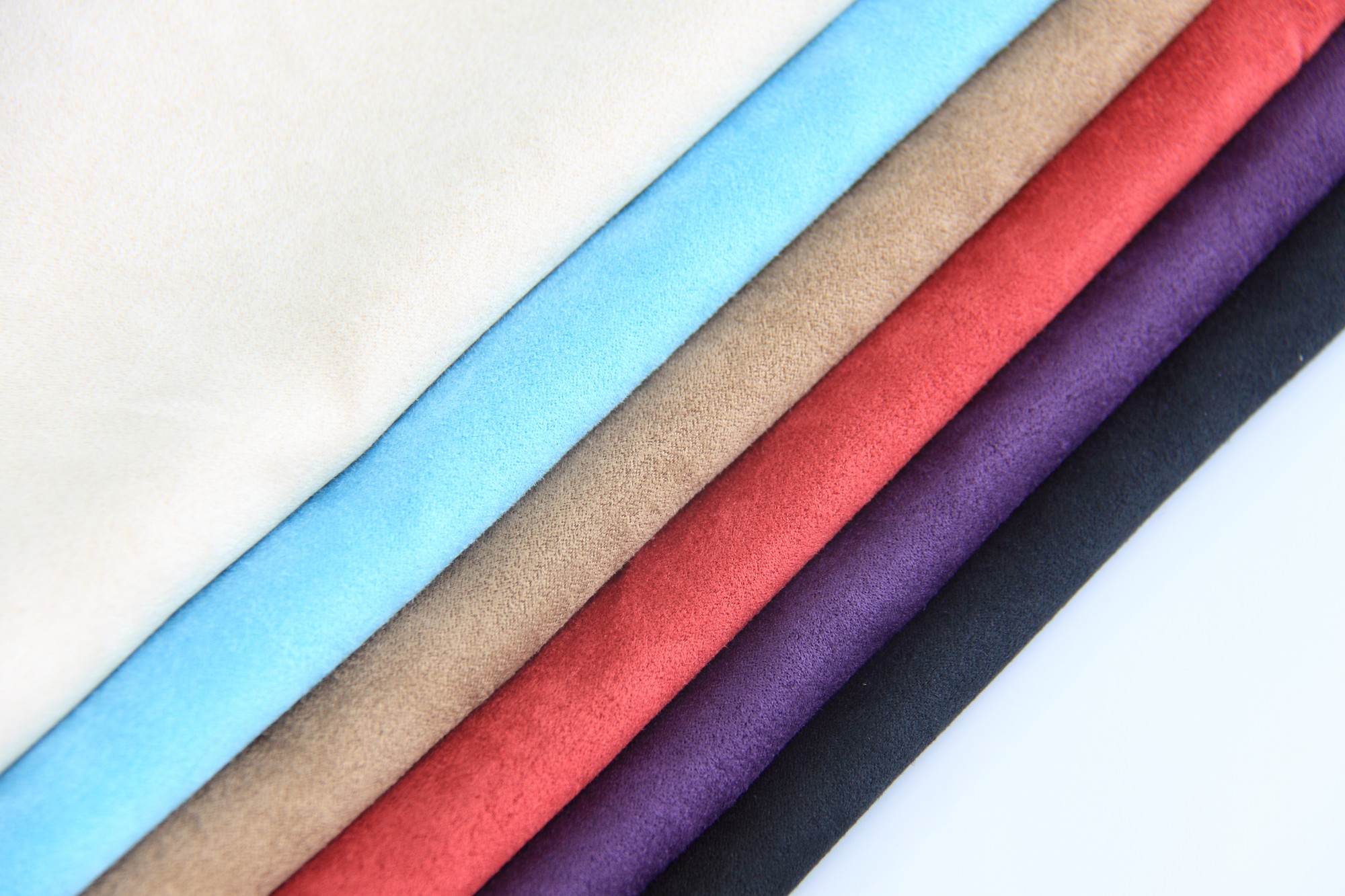 我司生產(chǎn)的緯向麂皮絨,均采用環(huán)保染色,及品牌染料染色而成,色澤柔和,色牢度好!