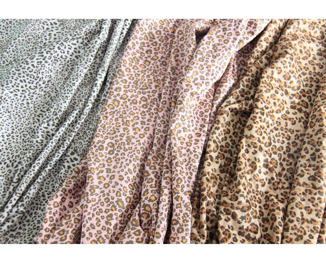 2018年時尚動物紋強勢歸來,豹紋,蛇皮紋尤為突出,豹紋大衣,豹紋提包,豹紋衛(wèi)衣,豹紋短裙這些面積比較大的需要大的豹紋花型,而達到比例尺寸的協(xié)調(diào)美感,而手套,保暖緊身褲,小件單品,兒童服飾等則需要比較小的豹紋,所以開發(fā)了三四個小豹紋麂皮絨印花滿足市場需求。豹紋花型變化,演繹萬千,我公司也有其他豹紋,歡迎客戶提供花型定做!