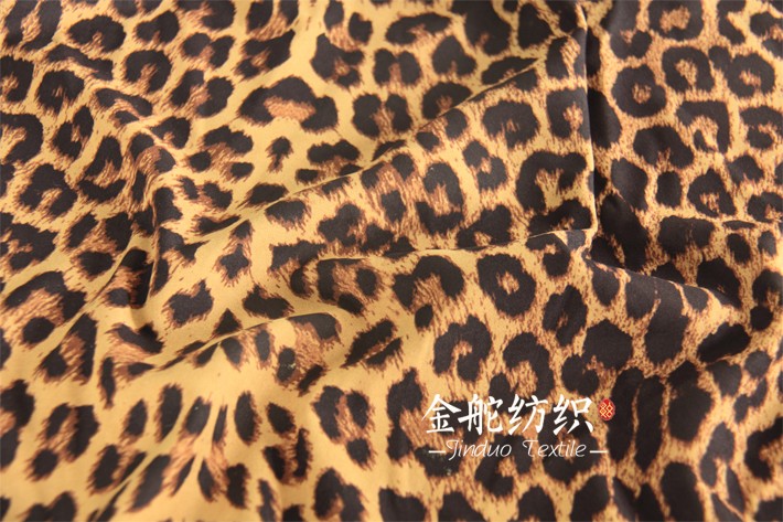 韓國絨印花,采用毛感短細(xì)膩,表面的斜紋效果的韓國絨面料,數(shù)碼印花加工,2018年時尚豹紋,春裝女裝風(fēng)衣面料!