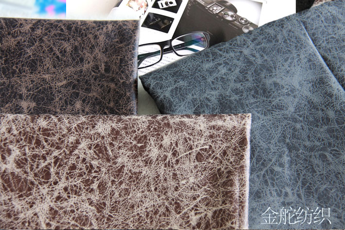 該面料選用梭織緯向麂皮絨,進(jìn)行燙金工藝加工,具有較好的皮膜效果,硬挺耐磨,膠水復(fù)合6米黑色針織布,透光率低,可做仿皮抱枕,沙發(fā)套,遮光窗簾面料。可按客戶來樣開發(fā)定制花型。