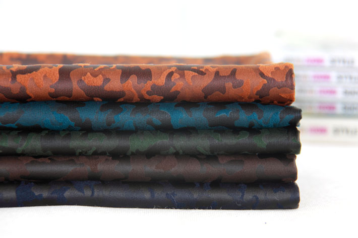 迷彩源于軍隊(duì)服裝,給人種力量感,是每個(gè)男人的夢想,也是時(shí)尚界流行元素,帥性灑脫。該面料結(jié)合了迷彩元素與麂皮絨的絨毛相結(jié)合,具有較好的仿皮效果,非常適合做男裝茄克及皮手套。