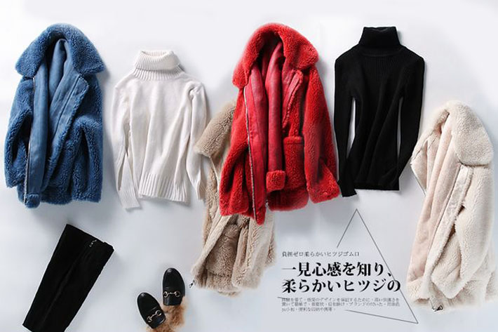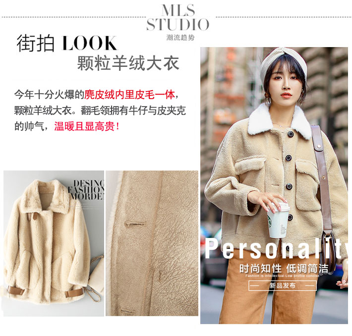 顆粒羊絨,麂皮絨內(nèi)里復(fù)合皮毛一體外套展示