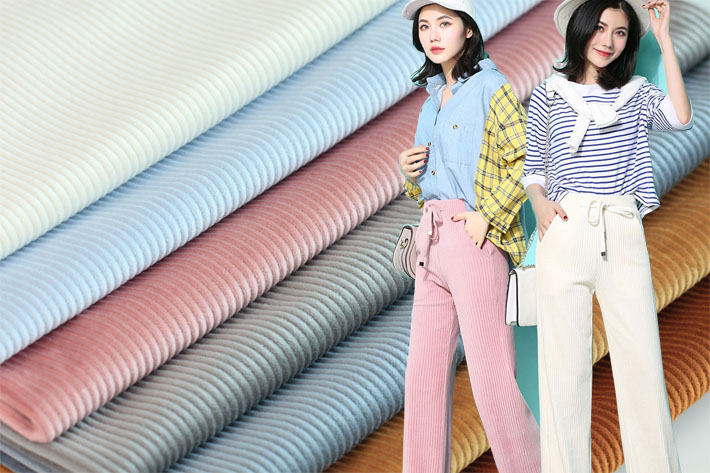 寬松,舒適,柔軟,隨性百搭,擁有這么多優(yōu)點(diǎn)的闊腿褲成為愛(ài)美女性的必不可少的必備單品,四季的輪回都少不了闊腿褲的身影,而燈芯絨條絨面料做成的闊腿褲,除了以上優(yōu)點(diǎn)外,縱向的條絨在視覺(jué)上可以拉長(zhǎng)身型,讓人看起來(lái)更加顯瘦!這兩年來(lái),復(fù)古風(fēng)格的興起,燈芯絨闊腿褲成了秋冬女褲市場(chǎng)最大的贏家。下面推薦下這款銷量很好的條絨面料,該面料屬于針織坑條面料,也叫3d直條絨,經(jīng)編6坑,全滌抽條燈芯絨,由經(jīng)編機(jī)織造而成,再經(jīng)拉毛,染色,定型,燙光等多到工藝生產(chǎn)而成。表面形成緊密的條絨效果,條絨清晰,絨毛柔順,色牢度高,撕裂牢度好,不用擔(dān)心因坐下,褲子會(huì)開(kāi)裂。