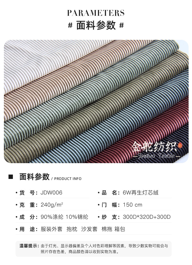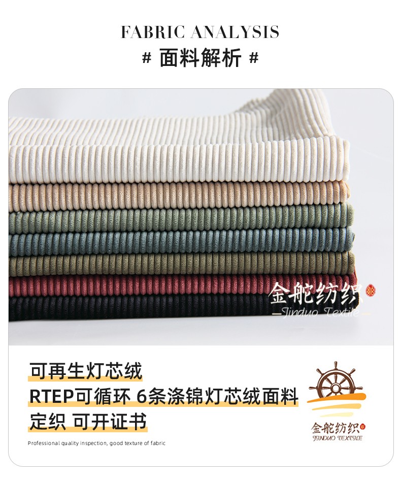 再生燈芯絨,6條錦滌燈芯絨,RPET可循環(huán)環(huán)保面料,提供GRS證書(shū)